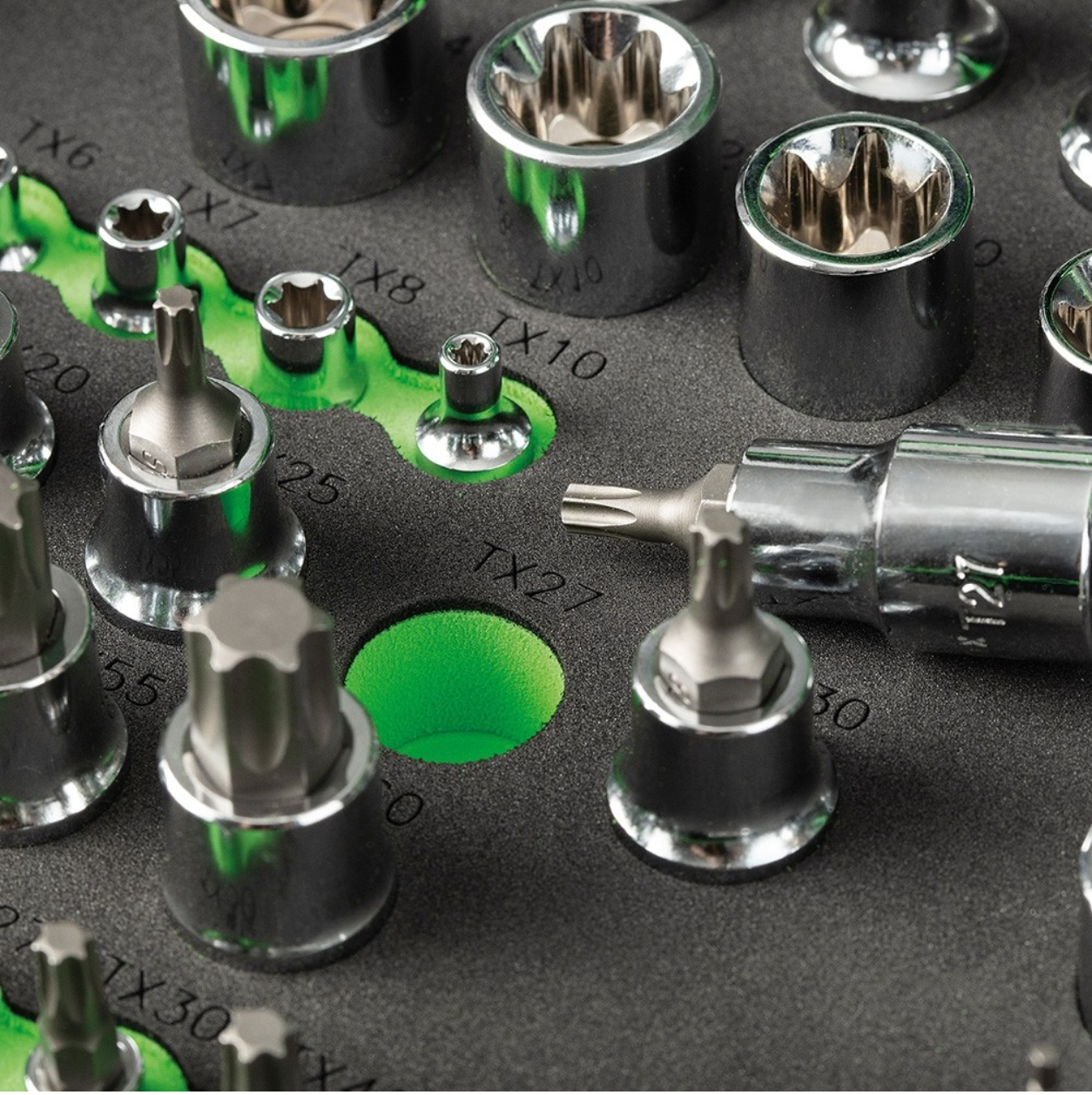 Este conjunto é ideal para manter a tua oficina organizada, com cada ferramenta posicionada no respetivo módulo, facilitando a manutenção, reparação e montagem em qualquer projeto.