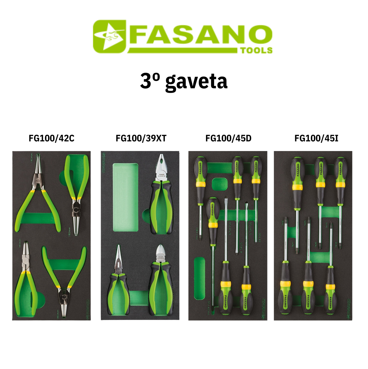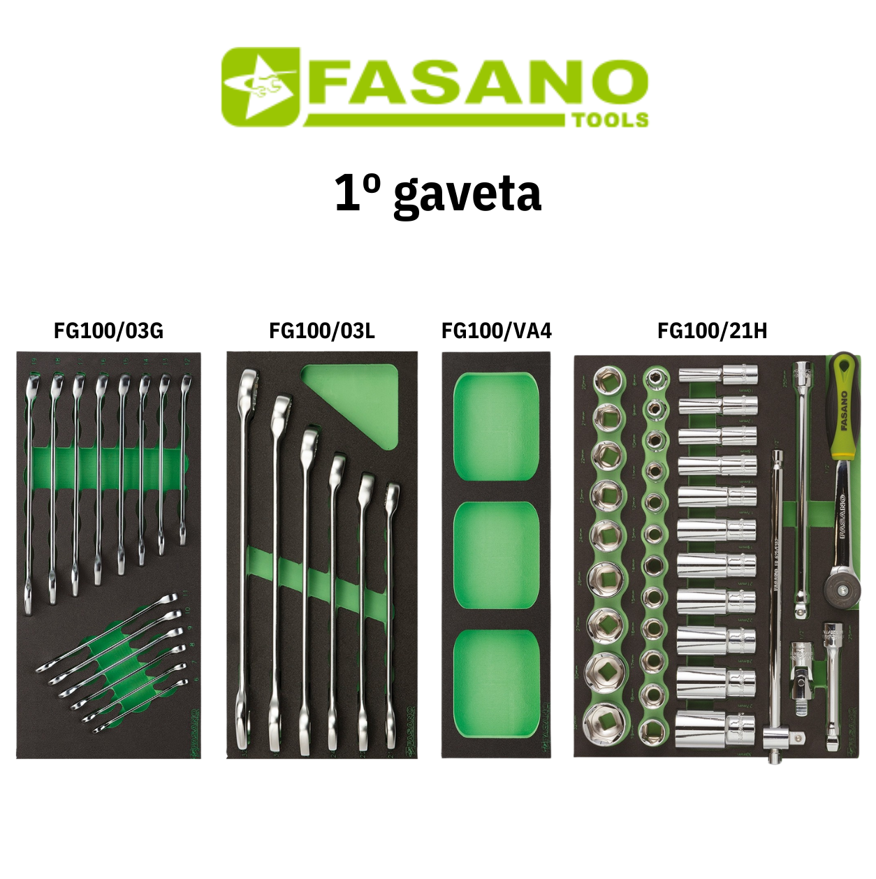 O Fasano Tools FG 124/AS322 é um conjunto profissional completo que combina um carro porta-ferramentas robusto com 7 gavetas com um sortido de 322 ferramentas em módulos de borracha, oferecendo uma solução de armazenamento e trabalho ideal para oficinas automóveis, centros de manutenção industrial, técnicos profissionais e equipas de serviço. Este conjunto foi desenhado para proporcionar uma organização superior, mobilidade eficiente e um kit de ferramentas abrangente, pronto a utilizar desde o primeiro dia.