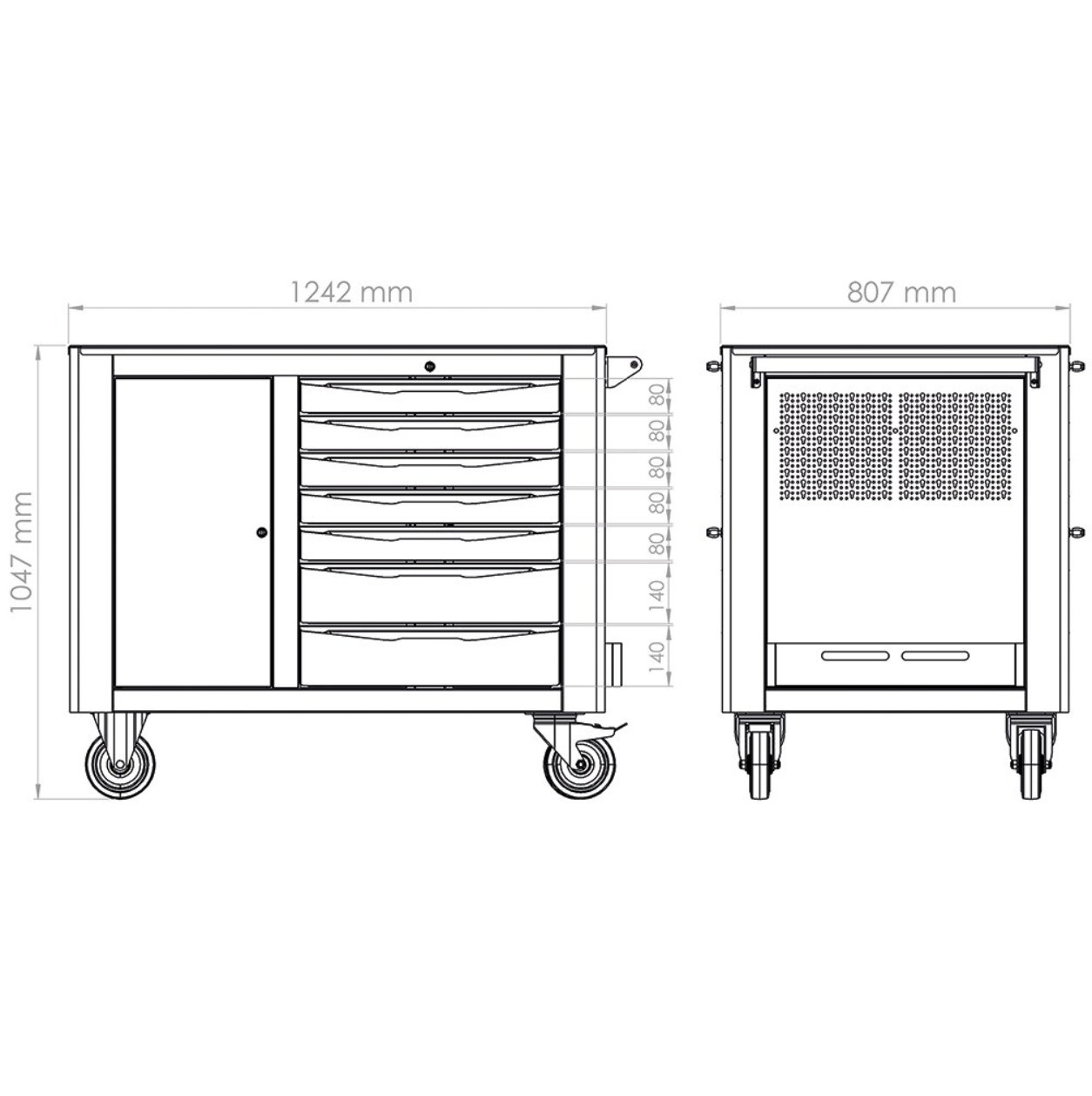 🔹 Organização eficaz: graças às 14 gavetas de diferentes tamanhos e armário, ferramentas de grande e pequena dimensão podem ser arrumadas de forma lógica e acessível.