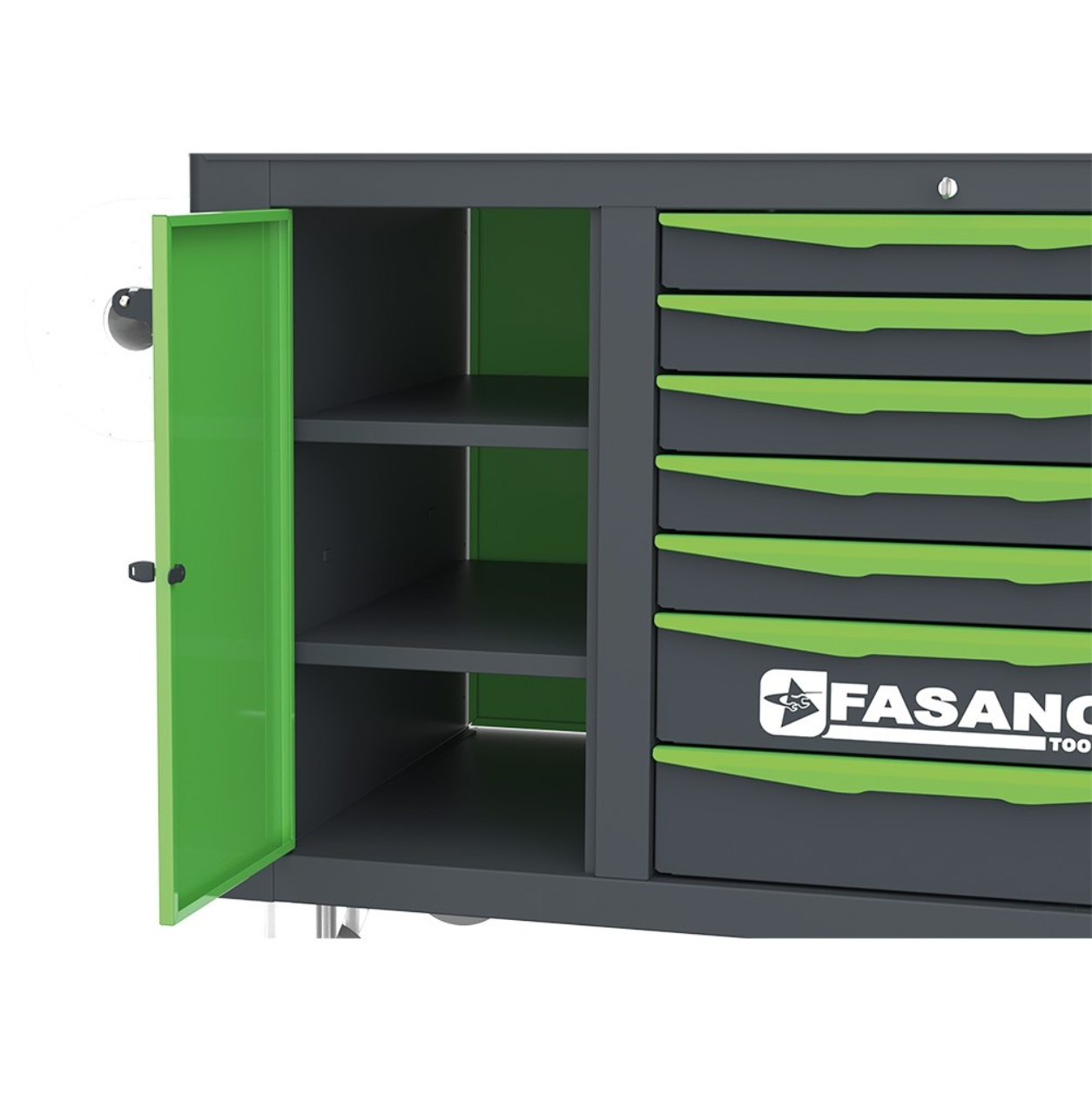 O Fasano Tools FG 162 é um carro porta-ferramentas profissional de alta capacidade concebido para oficinas, serviços de manutenção e ambientes industriais que exigem uma solução robusta, organizada e fácil de manusear para ferramentas e acessórios. Com 14 gavetas de diferentes dimensões, sistema de acesso intuitivo e componentes de qualidade, este modelo oferece uma estação de trabalho completa e versátil que melhora a eficiência do dia a dia em trabalho profissional.