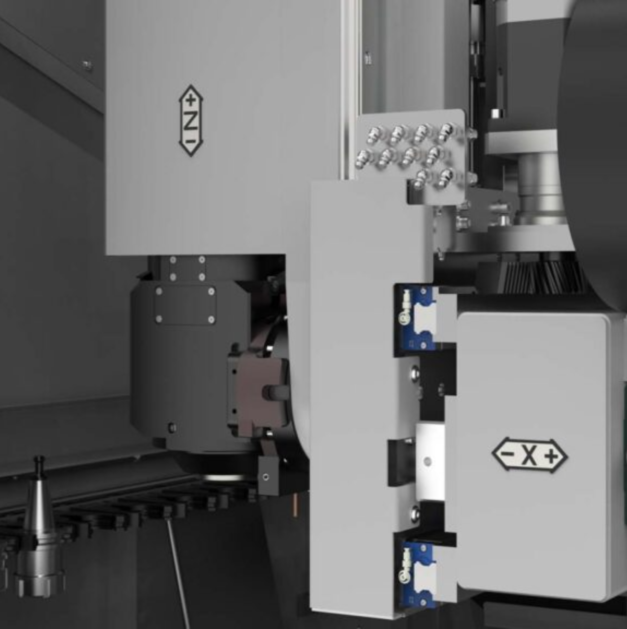 4 eixos totalmente controlados (X, Y, Z + eixo rotativo) que permitem usinagem em múltiplas faces do perfil sem reposicionamento manual, aumentando precisão e reduzindo tempos mortos.